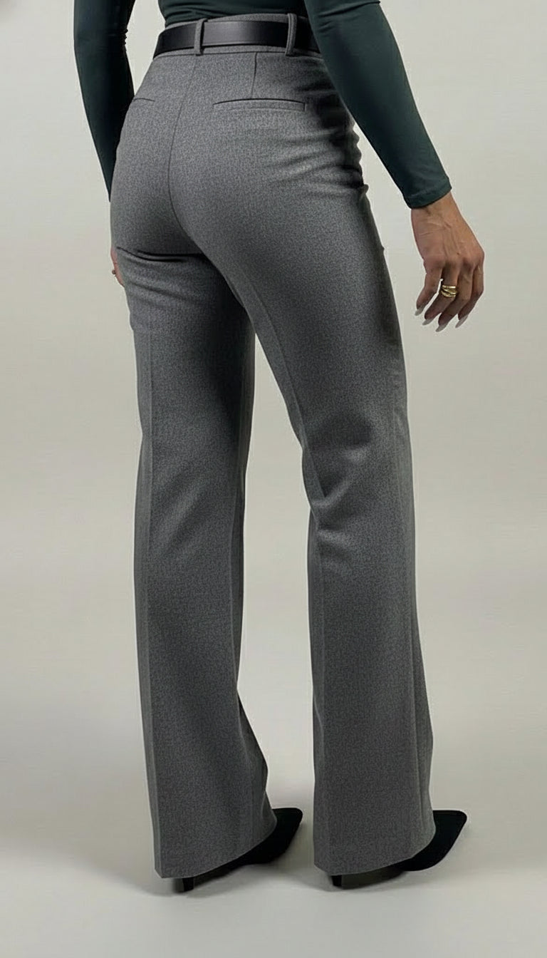 Este pantalón esta hecho con una tela que, con un tacto más firme, ayuda a mantener una estructura elegante que acompaña el movimiento sin perder forma.