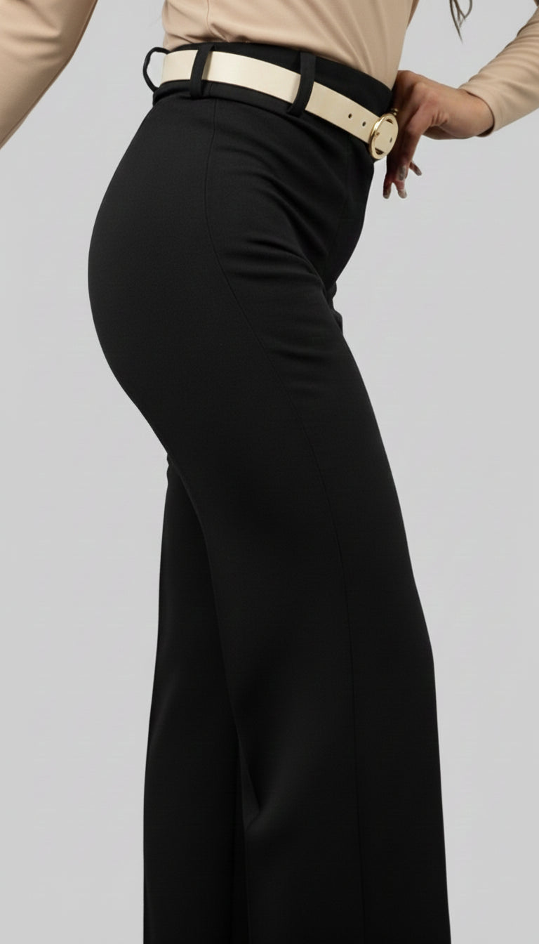 El corte amplio estiliza visualmente la pierna y crea una línea uniforme desde la cadera hasta el bajo, lo que aporta una proporción más equilibrada para cuerpos altos. Gracias a su largo real, no queda corto al caminar ni al sentarte, y se adapta bien tanto a flats como a tacones.