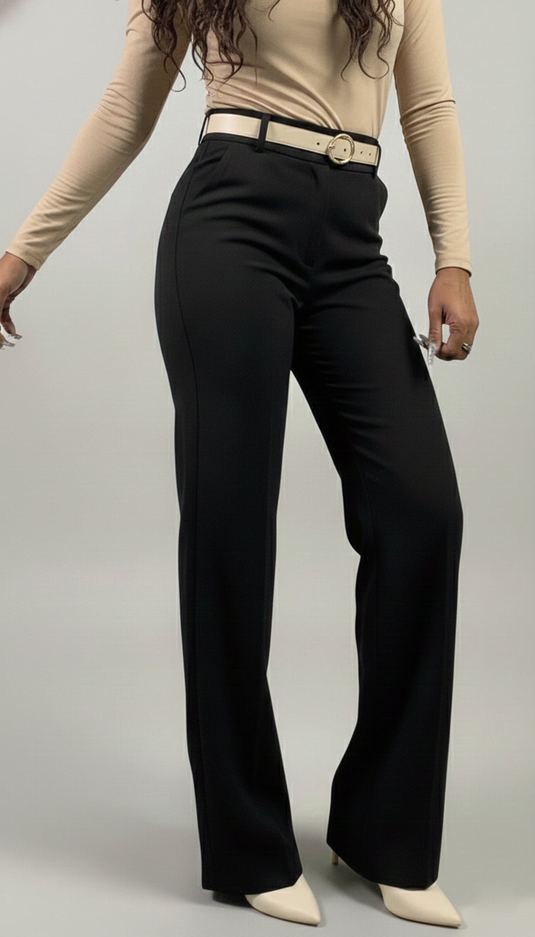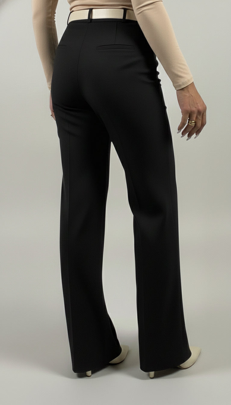 Este pantalón esta hecho con una tela que, con un tacto más firme, ayuda a mantener una estructura elegante que acompaña el movimiento sin perder forma.