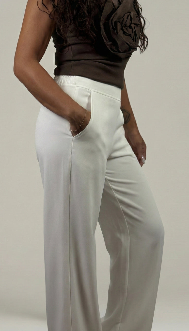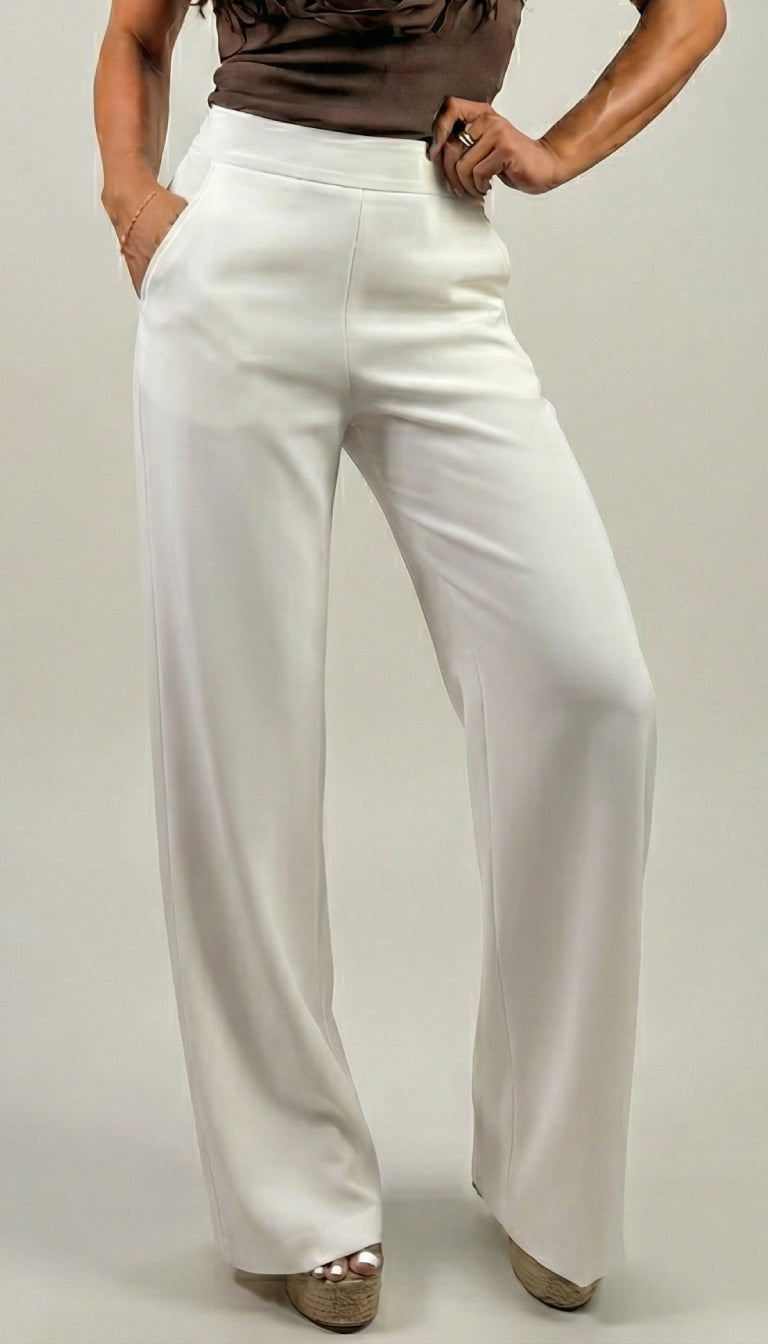 Pantalón de Vestir Para Mujer Corte Wide Leg- Hueso (Regular/Curvy)