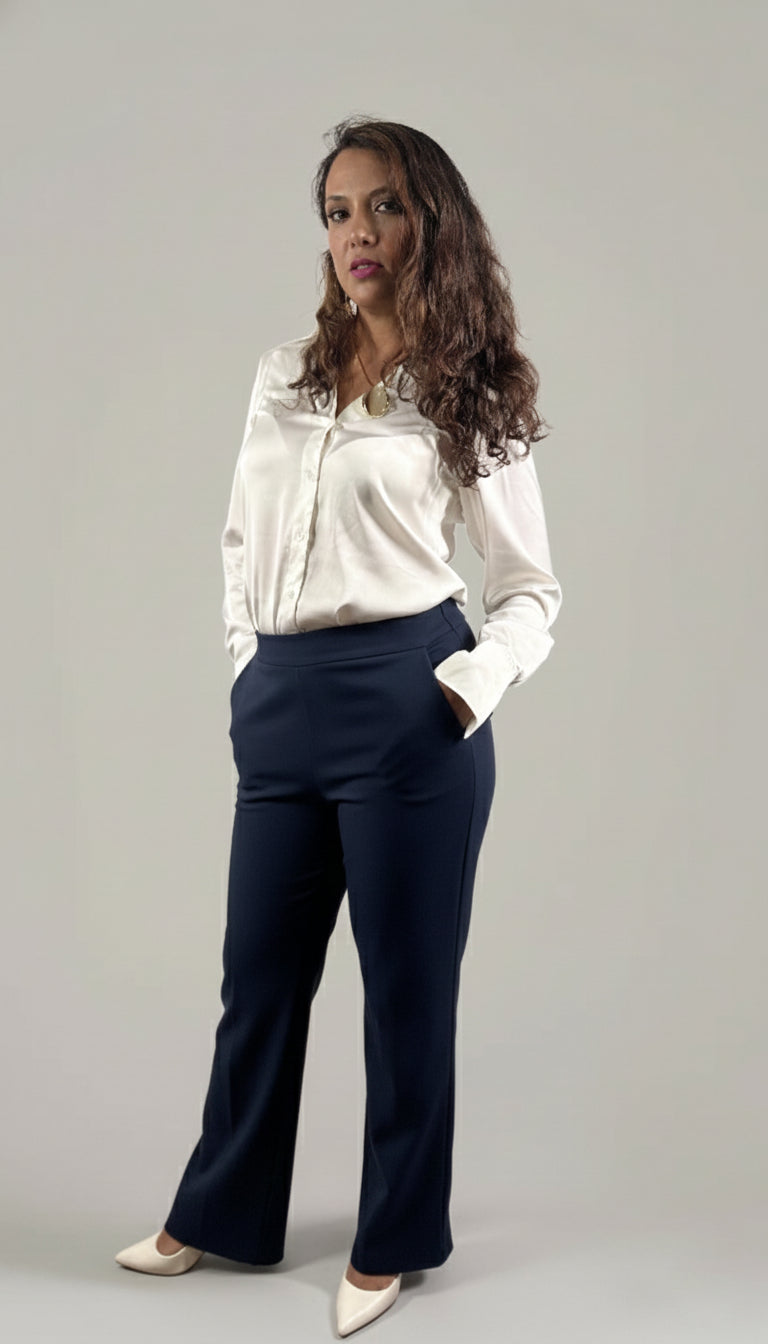 Pantalón de Vestir Para Mujer Media Campana Con Pretina- Azul Marino (Curvy)