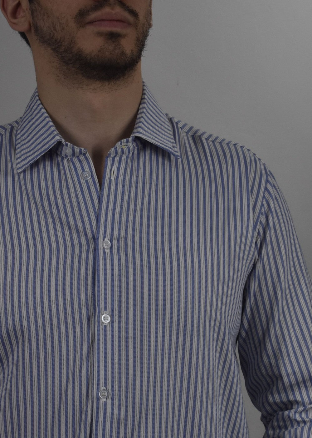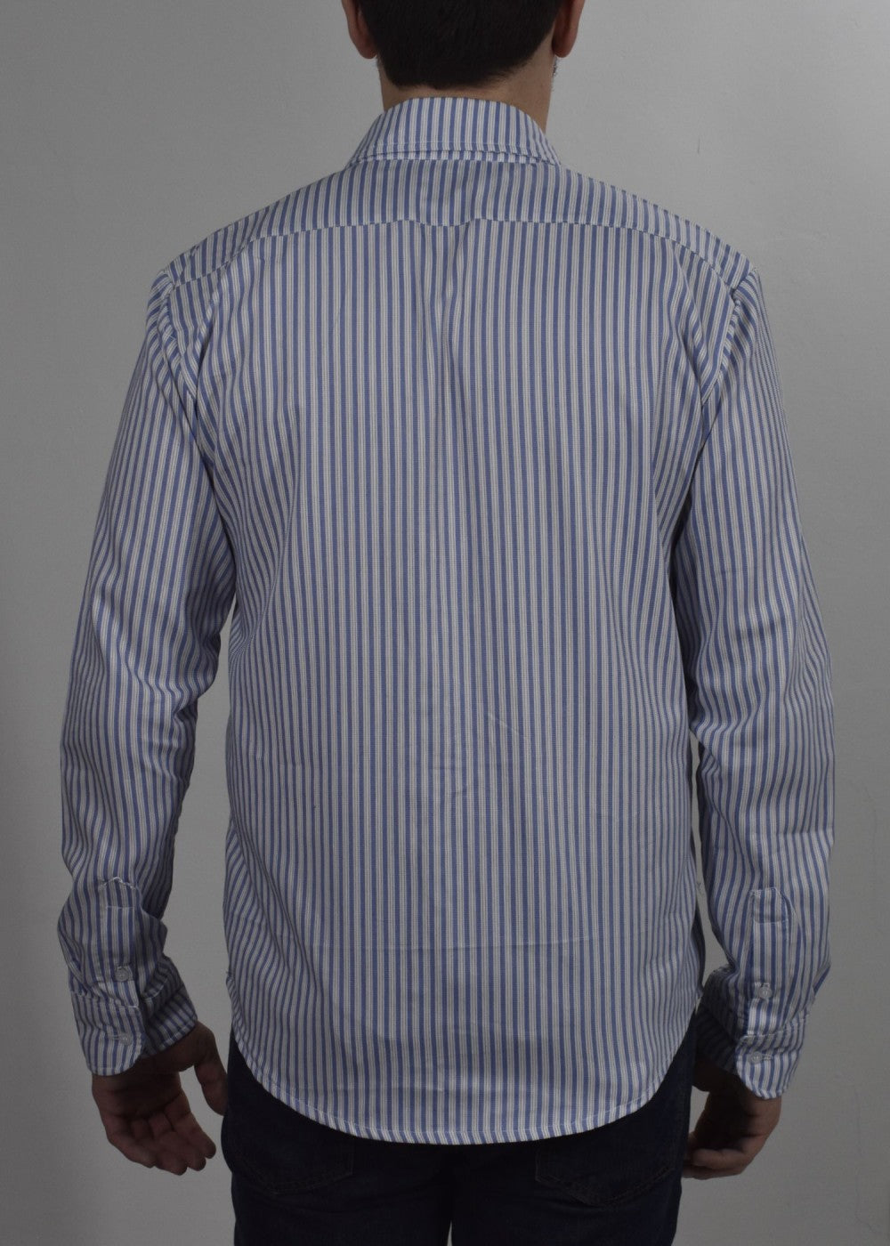 Camisa Casual Para Hombres Altos- Manga Larga (Azul Con Rayas)